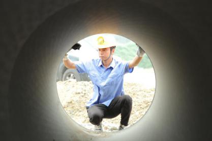 深土溝中作業(yè) 爬進(jìn)管道安檢