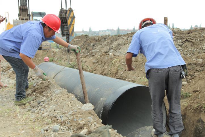 8月31日中上午11時(shí)許,天氣陰冷,烏云低垂,一場(chǎng)大雨即將來(lái)臨。在內(nèi)環(huán)南路-沿江大道段供水管網(wǎng)施工工地上,卻是一派機(jī)器轟鳴、熱火朝天的施工景象。襄陽(yáng)中環(huán)水務(wù)供水工程有限公司第五項(xiàng)目部施工員王俊,正和另外5名施工員一起,鋪設(shè)內(nèi)環(huán)南路-沿江大道長(zhǎng)達(dá)3.2公里、直徑1.2米的供水主管網(wǎng),解決余家湖片區(qū)居民家中水壓低的問題。