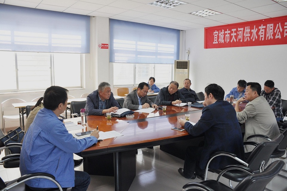 10月17日上午,襄陽市國資委副主任鄧世海在集團(tuán)公司黨委書記兼董事長李平、總經(jīng)理甄先強(qiáng)、副總經(jīng)理張華的陪同下,前往宜城天河供水公司,就宜城水廠二期改擴(kuò)建工程事宜與宜城市政府副市長譚濤、宜城市住建局局長肖俊等進(jìn)行磋商洽談,宜城天河供水公司黨支部書記金鋒、總經(jīng)理趙建、總會計師汪志輝參加了此次磋商洽談。